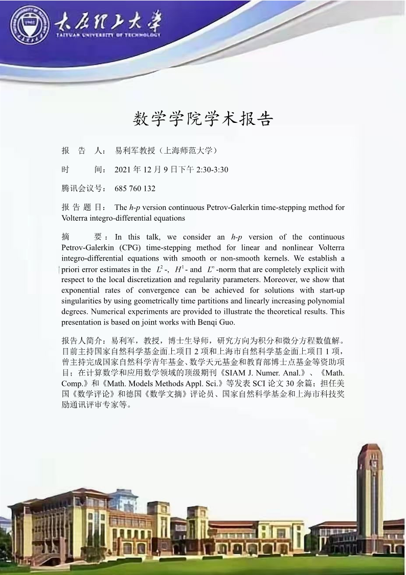 yl23411将于12月9日邀请上海师范大学易利军教授作报告