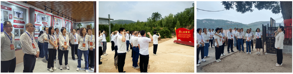 全体师生赴平定县巨城镇南庄村进行学习。在纪念碑前默哀,并面向党旗重温入党誓词,铿锵有力的誓言坚定了大家为共产主义奋斗终身的信心和决心。在1700多年的古槐下聆听了白晓芳老师讲解的烽火岁月南庄人民利用地道抗击日军的光辉事迹,走进结构巧妙、四通八达的地道体验先辈们抗战的艰辛,认识到今天幸福生活的来之不易。