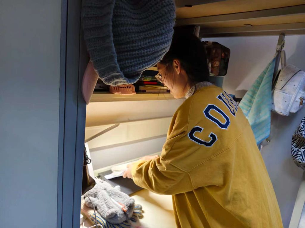 “地面清洁组”的成员们则是宿舍环境的“美容师”。他们手持扫帚、拖把等工具,向卫生死角发起总攻。从床铺与地面的狭窄缝隙,到阳台容易积灰的边角,每一处都不曾被遗忘。连散落的零食碎屑、细微的头发丝都被彻底清除。汗水挥洒间,原本蒙尘、发灰的地面逐渐恢复了本色,最终变得光可鉴人,映照出同学们忙碌而满足的笑脸,也折射出认真对待生活的态度。
