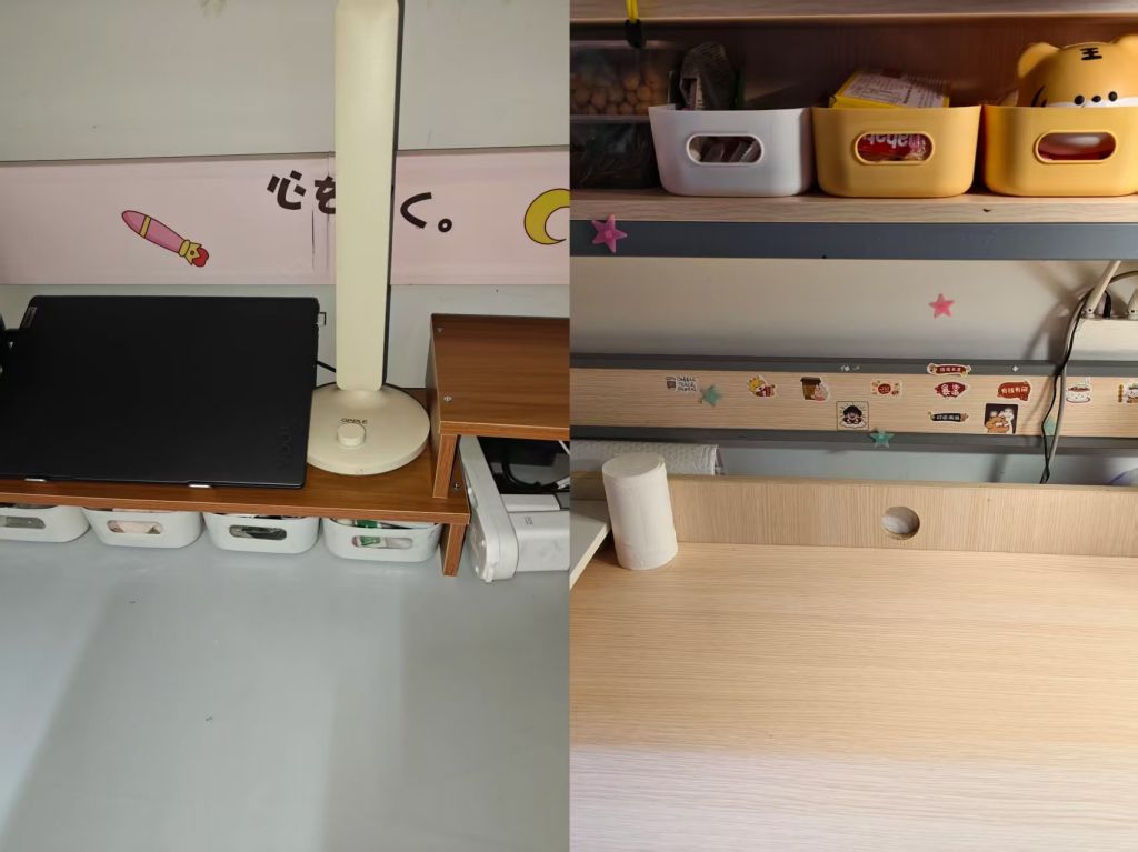“桌面收纳组”的同学们则化身空间“魔法师”。面对曾经被书本、文具、日用品瓜分的桌面,他们开始了大刀阔斧的改革:废弃的纸张被果断清理,零散的小物件借助收纳盒各归其位,常用的课本与工具书也按照使用频率被重新排列。通过巧妙的规划和整理,原本杂乱无章的桌面被成功释放出大片宝贵的自由空间。