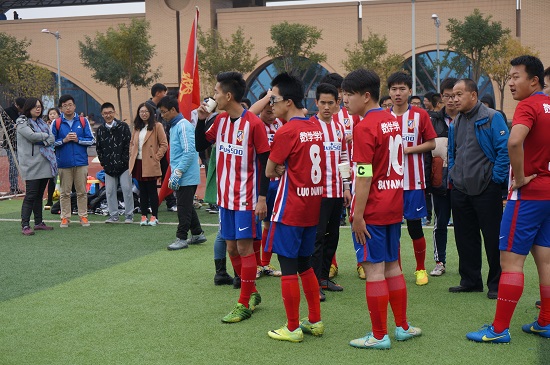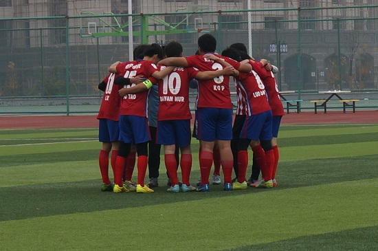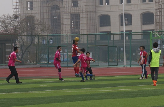 绿茵球场,青春飞扬,2015年11月13日中午,公司足球队和水利公司足球队在明向校区西操场进入四强争夺战环节。虽然刚刚下过了小雨,但仍然不影响我们运动健儿的比赛激情。
