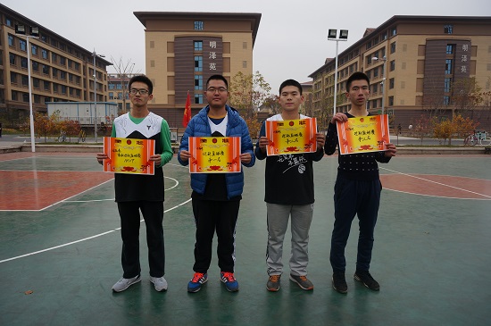 下午13:20,主持人宣布比赛开始。首先进行的是男生定点投篮比赛。赛场上,运动员们积蓄力量,投篮传球,争分夺秒,为运动员捡球的同学们亦配合默契,充分彰显团队力量。接下来是女生定点投篮,虽然在体力上不占优势,但女生投篮以稳中求胜,不输气势,命中率更高。男生们纷纷主动替女生捡球传球,使女生可以专心比赛,这种互帮互助也成为本场比赛一大亮点。 定点投篮赛结束后,进入技巧大赛环节。开始前,裁判首先为运动员进行了示范。比赛中,男女运动员们运球灵活,巧妙绕过障碍物进行三步上篮,赢得阵阵喝彩。部长队的比赛表现亦十分精彩。然后,员工会主席李俊炯为在迎新篮球赛中表现优秀的班级和队员颁发了奖状。
