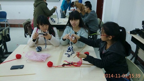 在活动中,同学们被分为6个小组,各组有1名员工会女工部部员负责教学。教员们教授了围巾编织的起针及其他最基本的针法,学员们认真地学习,并及时提出编织过程中遇到的问题,教员们也对同学们提出的问题进行了耐心的指导。接着,教员根据学员们的个人喜好提出自己的建议,同时开始逐个教授不同的围巾编织方法。学员们情绪高涨,用心学习,全身心地投入到编织之中。看着手中那一团杂乱无章的毛线渐渐的转变为一条可以保暖的围巾,每个人的脸上都洋溢出满意的笑容。 学习期间,同学们之间相互交流,相互切磋,争取将自己的作品完成的更加完美。