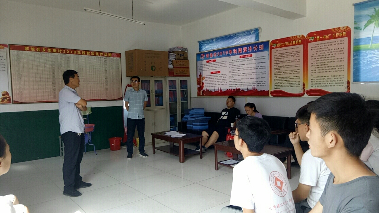 早上在村委会,胡堡村张主任向队员们介绍了当地的基本情况,以及脱贫成果。张主任介绍:"村民们以打工务农为主,同时搞养殖,割沙棘。全村已经摘去贫困的帽子,去年高粱亩产1600斤。"这一切喜人的成绩离不开他们每一个人的辛勤努力,值得敬佩。