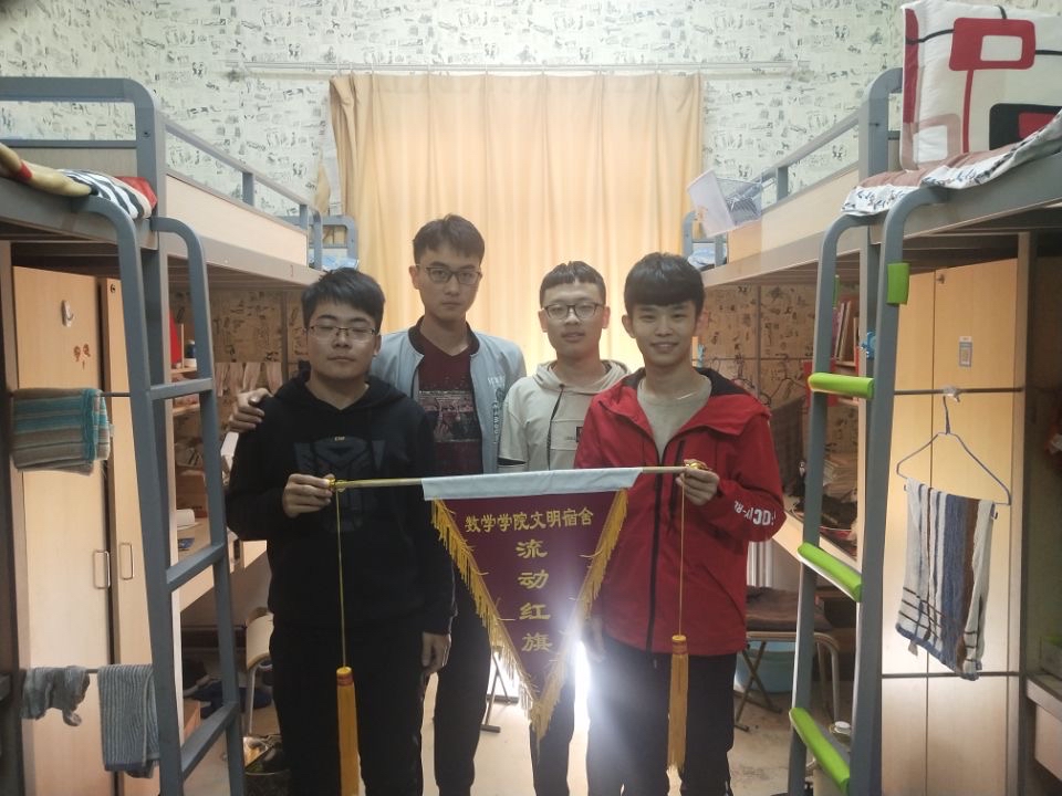 各个寝室、每位数院学子的共同努力,让流动红旗真正流动起来,在本学期的查寝工作中,被评选为榜样寝室的有女生寝室:107、108、302、305,男生寝室:308、327、315、322。“百尺竿头须进步,十方世界是全身”,在此,希望各榜样寝室继续保持现状,其他寝室迎头赶上,再接再厉。