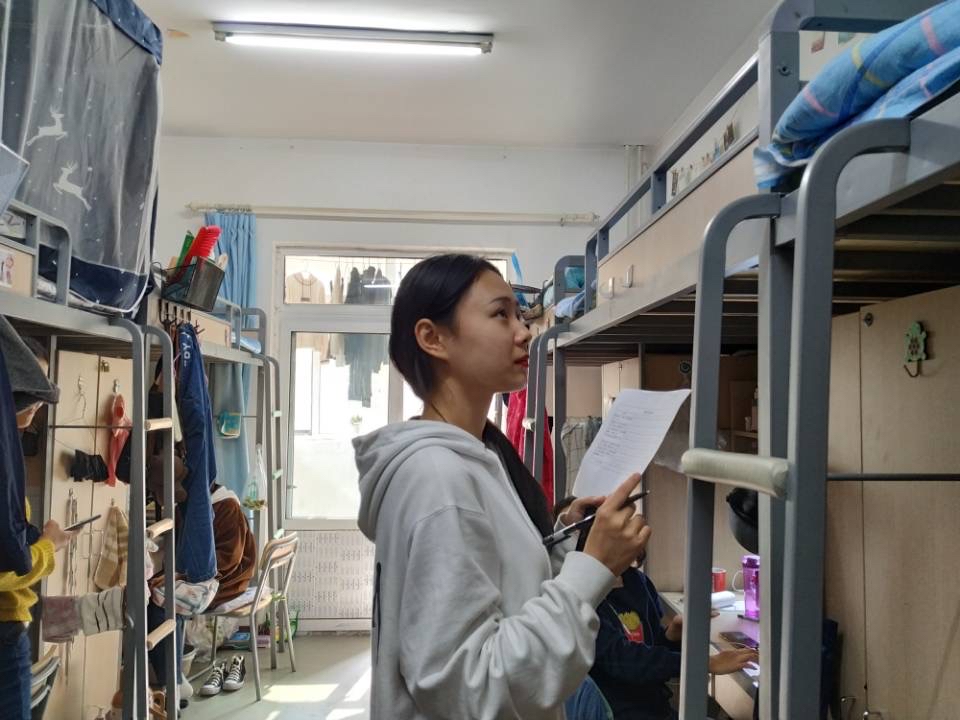 每周的内务检查如期而至,各寝室的成员积极行动,分工明确,有条不紊。中午12时,工作人员准时来到检查区域,阳台门窗、书桌摆放、柜子衣物,寝室的角角落落都干净整洁,一尘不染,可谓“户庭无尘杂,虚室有余闲”,从本学期第一次查寝至今,各寝室从毫无章法到有条不紊,从忽视惫懒到积极准备,公司莘莘学子的努力肉眼可见。