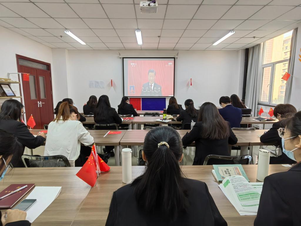 本次活动由黄源远同志主持。首先,大家集体观看了党的二十大开幕会特别播报。10时许,当雄壮的国歌在人民大会堂奏响时,所有参会党员也跟随直播全体起立奏唱国歌、为已故老一辈无产阶级革命家和革命先烈默哀。随后,大家认真聆听习近平总书记代表第十九届中央委员会所作的工作报告。