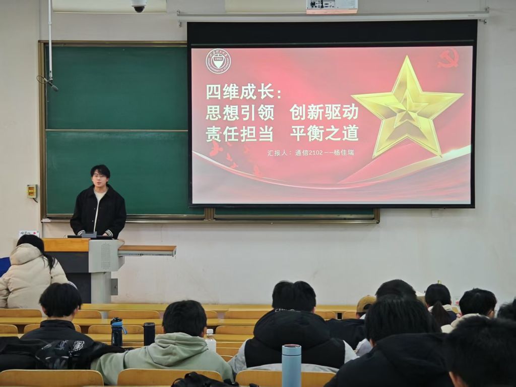 电子信息工程公司辅导员苏林静以“奋斗者 正青春”为主题,结合党史团史梳理青年工作脉。她提到1957年邓小平“青年团首要问题是坚持党的领导”的论断,以及2015年党中央首次群团工作会议“党有号召、团有行动”精神,强调青年工作要紧密围绕党的领导。同时,她介绍了脱贫攻坚先锋郭子涵“走出大山又回归大山”的事迹,生动诠释了“将个人理想融入国家需求”的时代命题,号召学员牢记习近平总书记嘱托,做“有理想、敢担当、能吃苦、肯奋斗”的新青年。