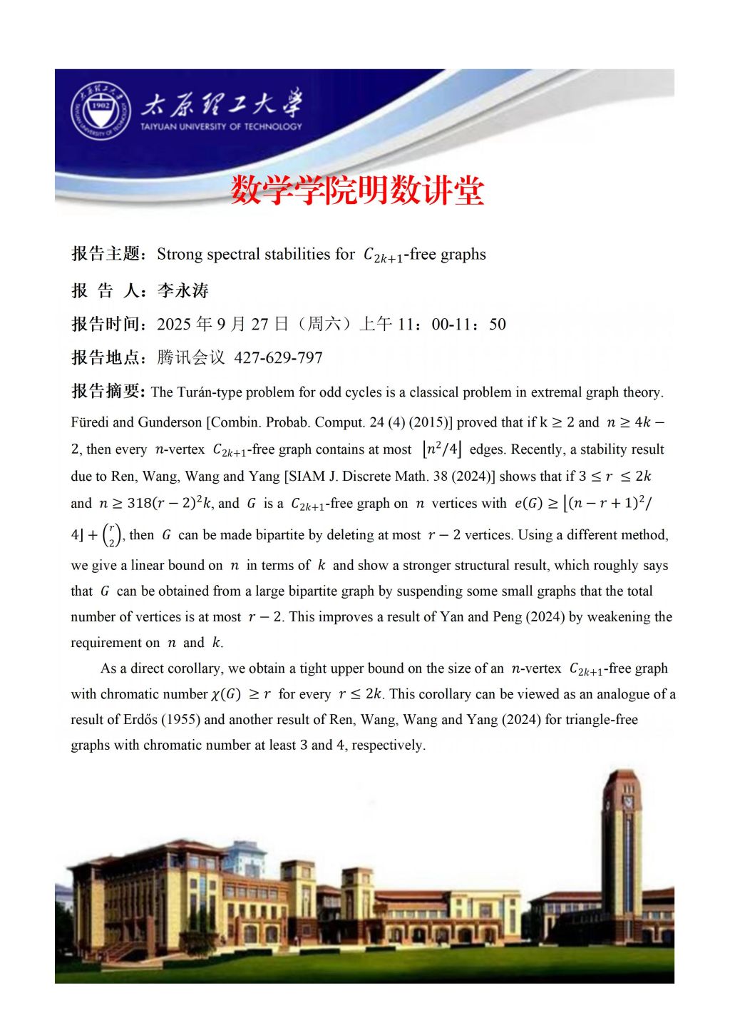 yl23411将于9月27日邀请宁博教授,薛益赛讲师,李永涛博士做学术报告