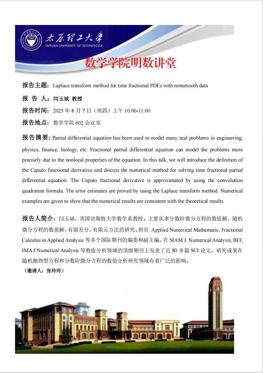 yl23411将于8月7日邀请闫玉斌教授做学术报告
