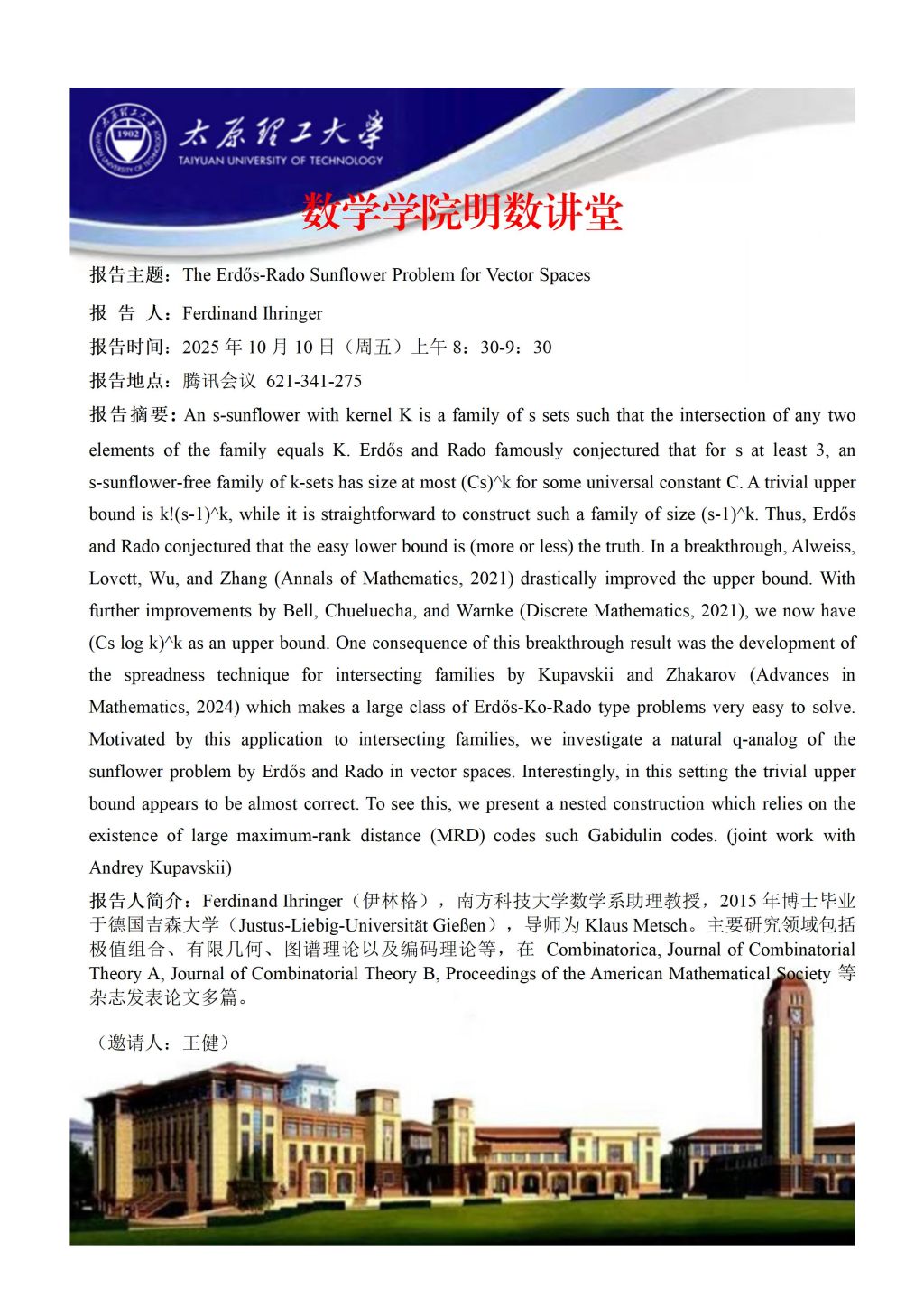 yl23411将于10月10日邀请Ferdinand Ihringer助理教授做学术报告
