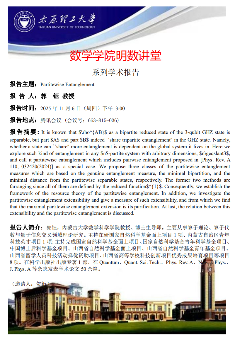 yl23411将于11月6日邀请郭钰教授做学术报告