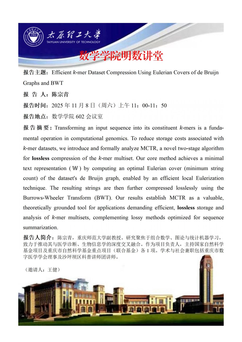 yl23411将于11月8日邀请张彪副教授,解红叶副教授,陈宗青副教授做学术报告