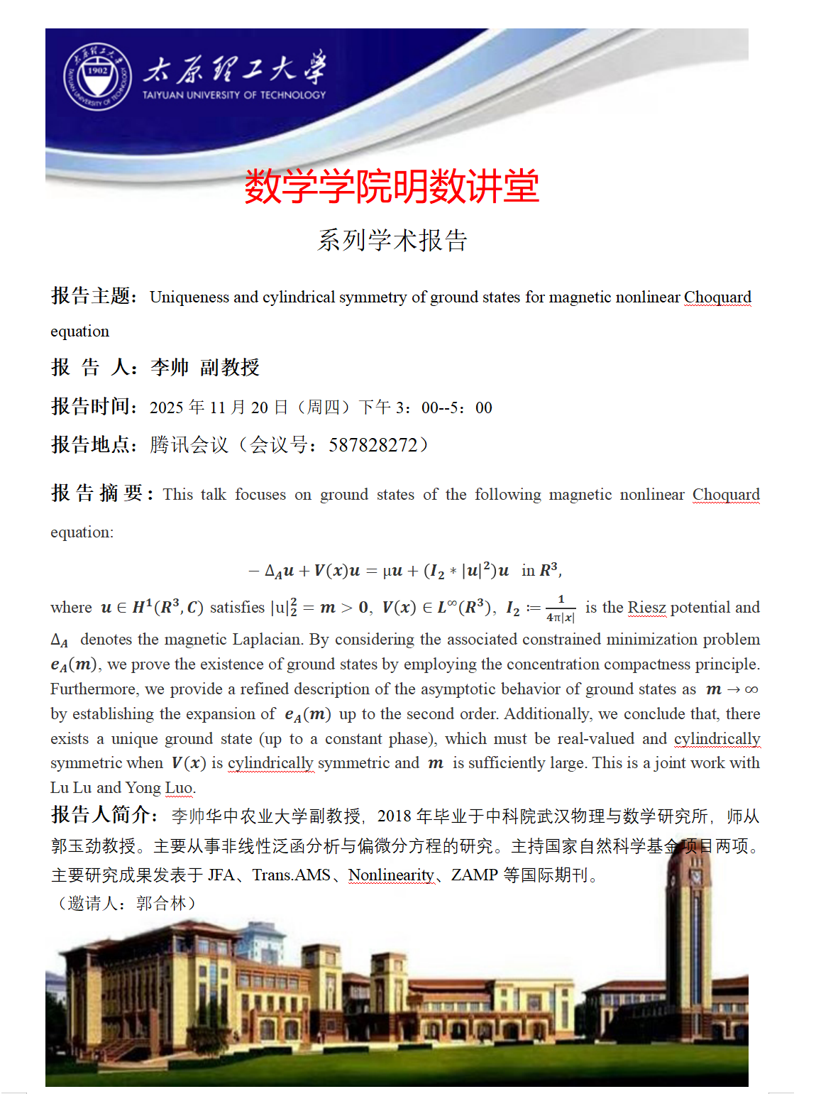 yl23411将于11月20日邀请李帅副教授做学术报告