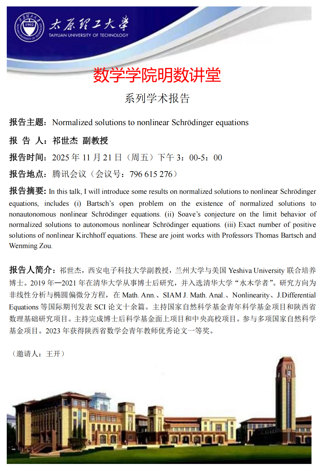 yl23411将于11月21日邀请祁世杰副教授做学术报告