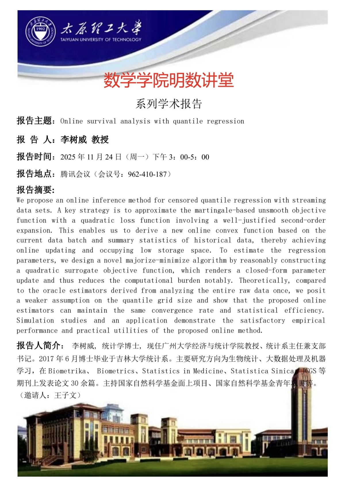 yl23411将于11月24日邀请李树威教授做学术报告