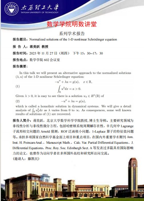 yl23411将于11月27日邀请蒋美跃教授做学术报告