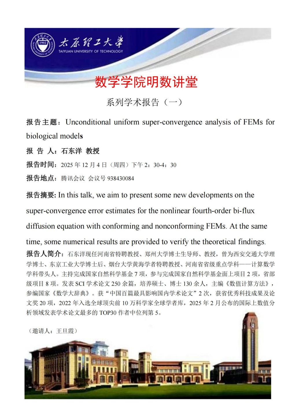 yl23411将于12月4日邀请石东洋教授做学术报告