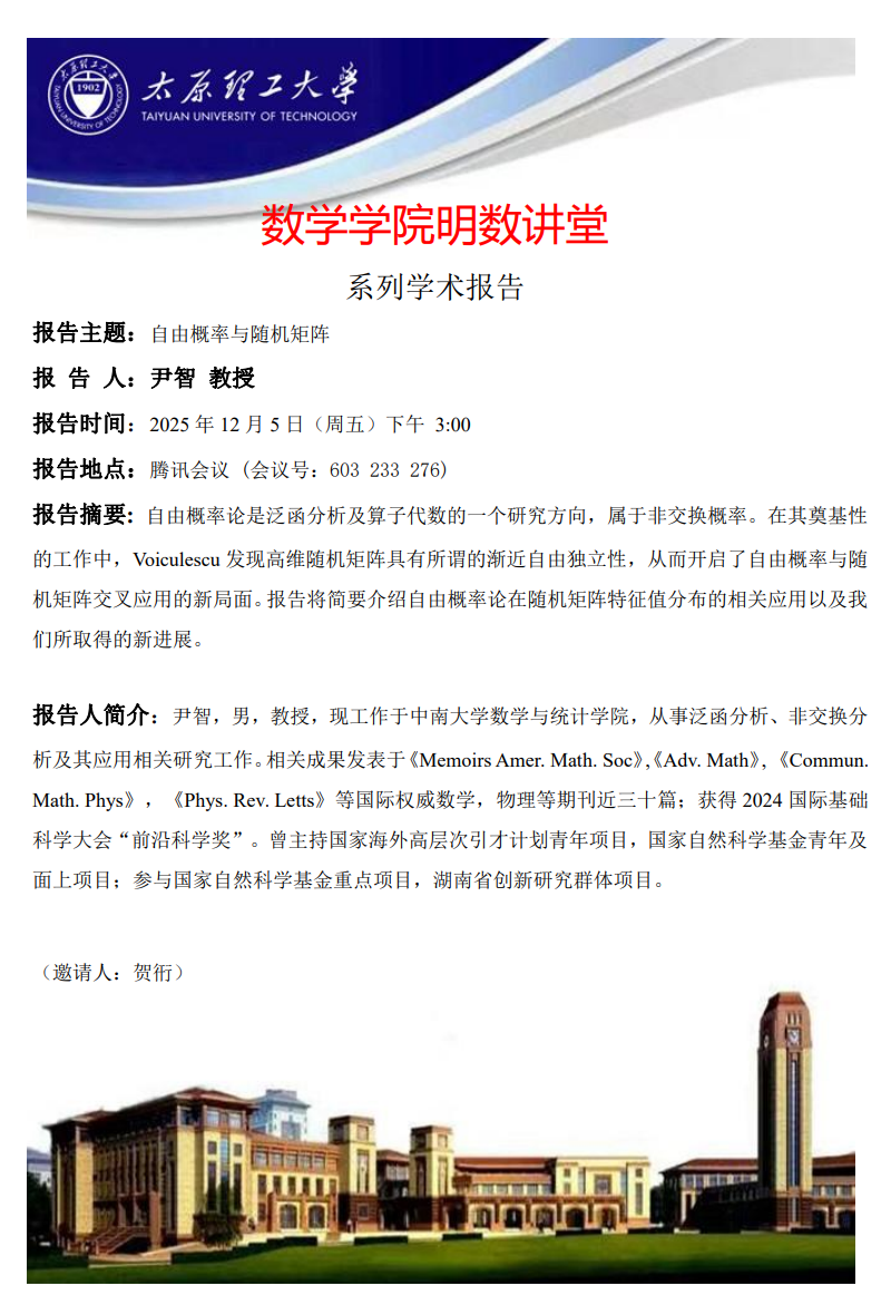 yl23411将于12月5日邀请尹智教授做学术报告