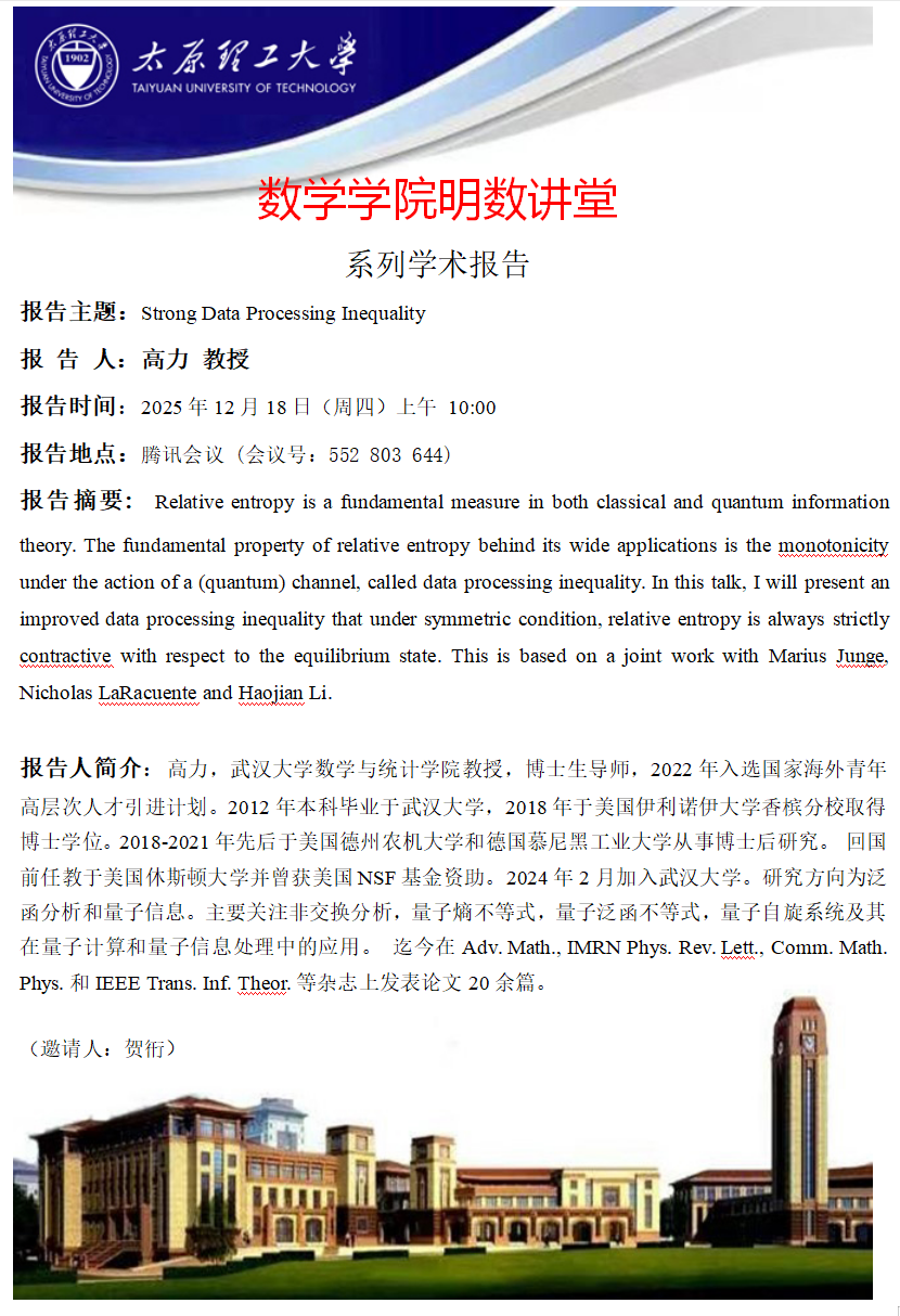 yl23411将于12月18日邀请高力教授做学术报告