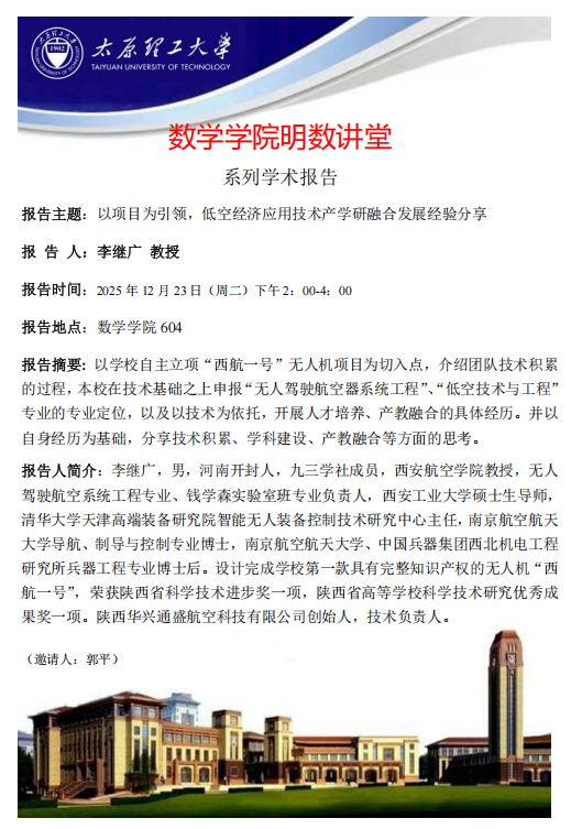 yl23411将于12月23日邀请李继广教授做学术报告