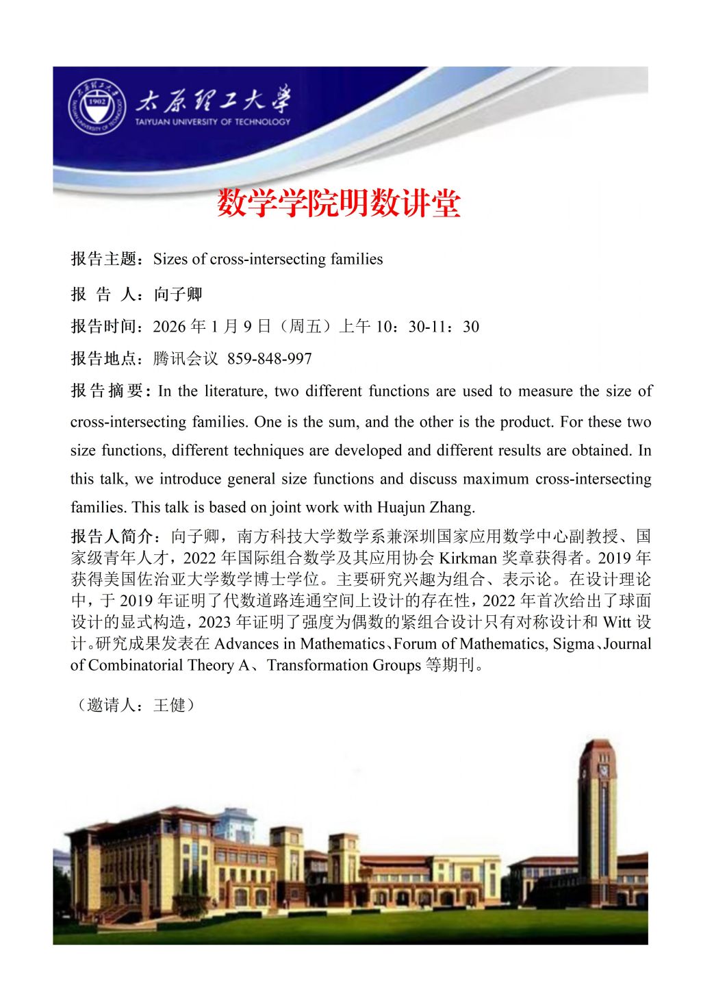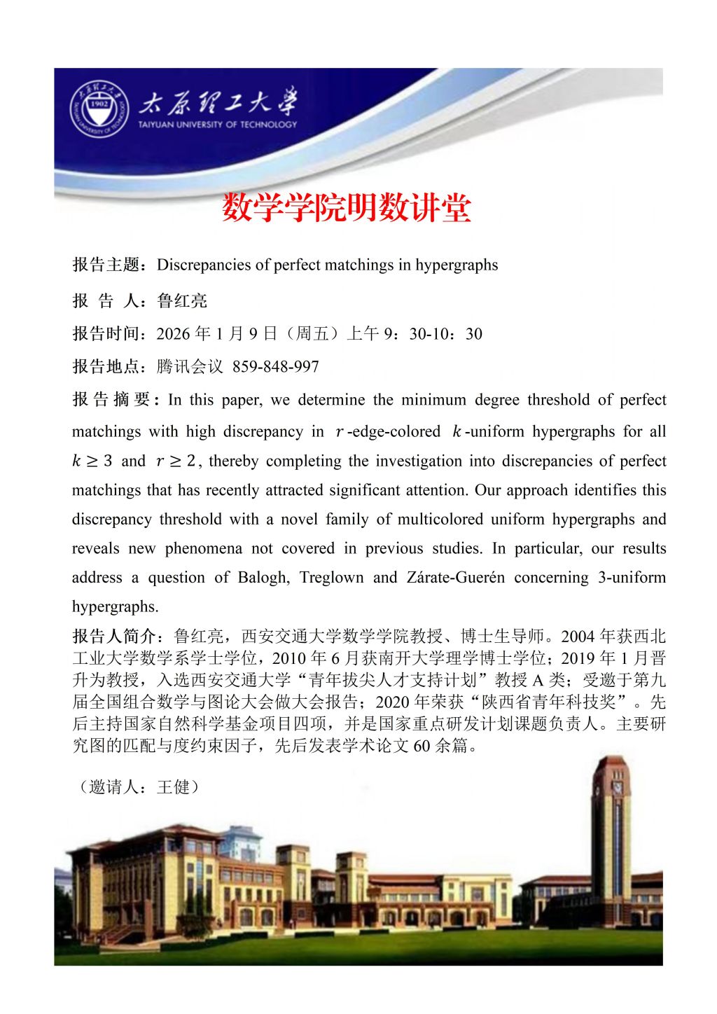 yl23411将于1月9日邀请鲁红亮教授,向子卿副教授做学术报告