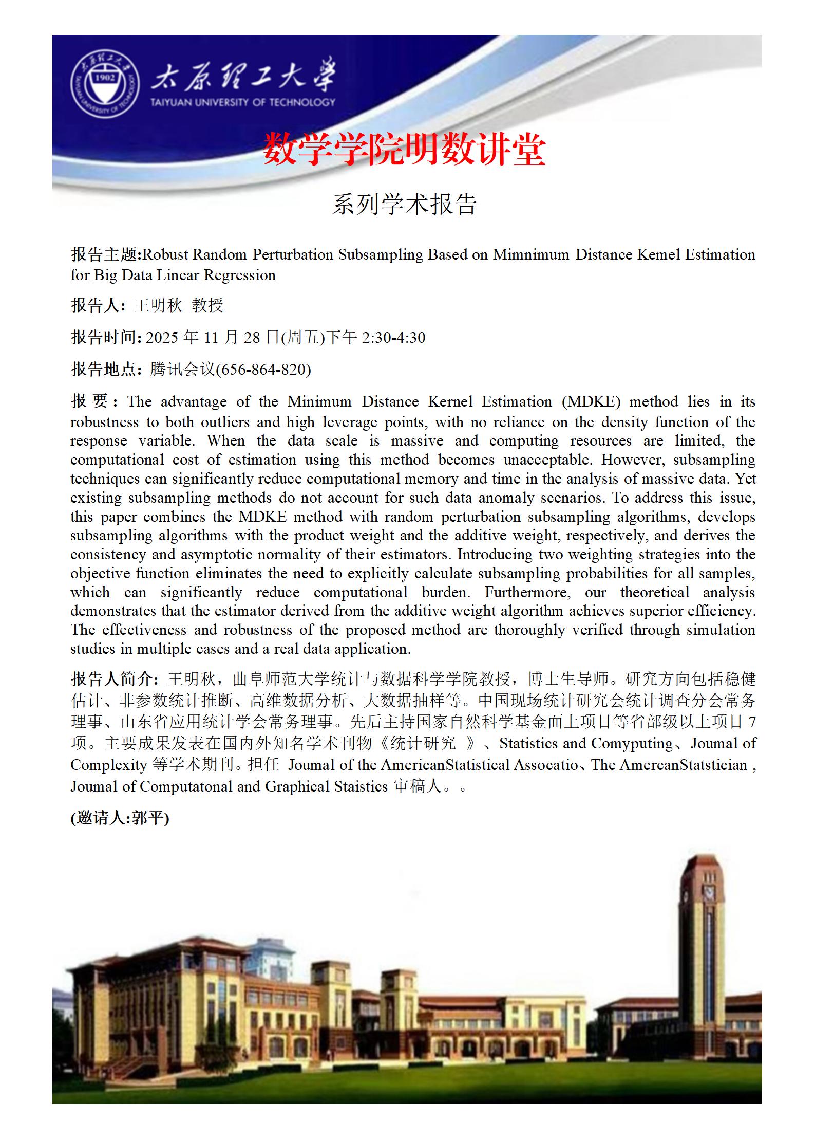 yl23411将于2025年11月28日邀请王明秋教授做学术报告