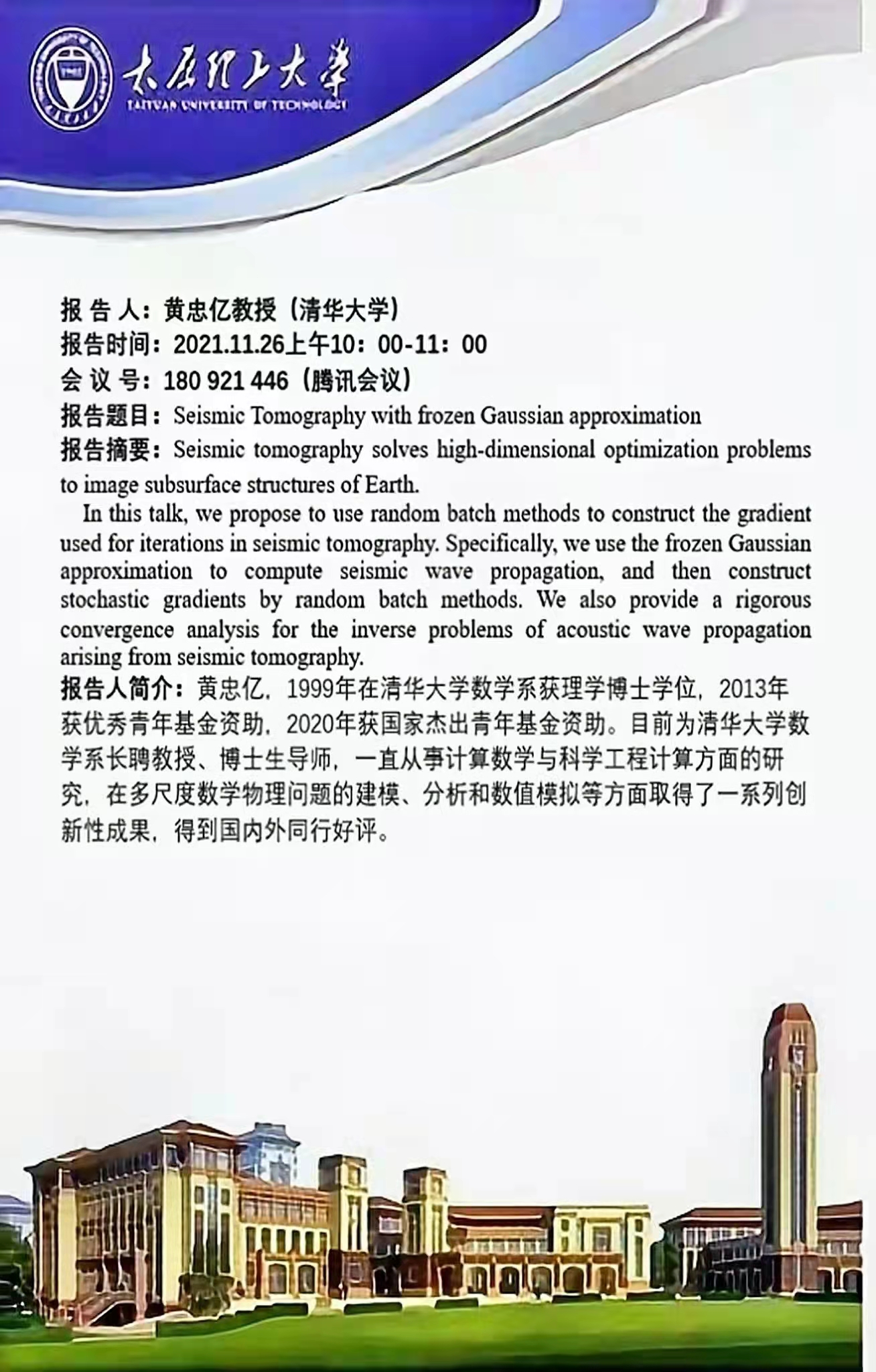 日在腾讯会议作线上报告,欢迎大家参加!