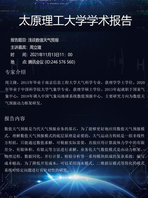 公司邀请南昌大学郑辉教授、同济大学孙秀婷教授、中国气象局周立隆工程师于11月13日在腾讯会议作线上报告,欢迎大家参加!