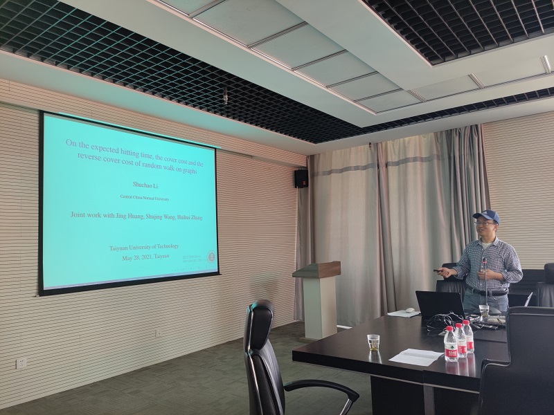 5月28日上午,华中师范大学李书超教授应邀在yl23411602会议室为公司师生作题为“On the expected hitting time, the cover cost and the reverse cover cost of random walk on graphs”的报告。报告由yl23411副经理杨卫华教授主持,公司图论方向的教师与研究生参加了报告会。