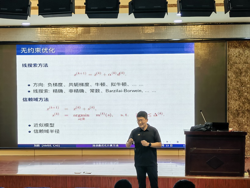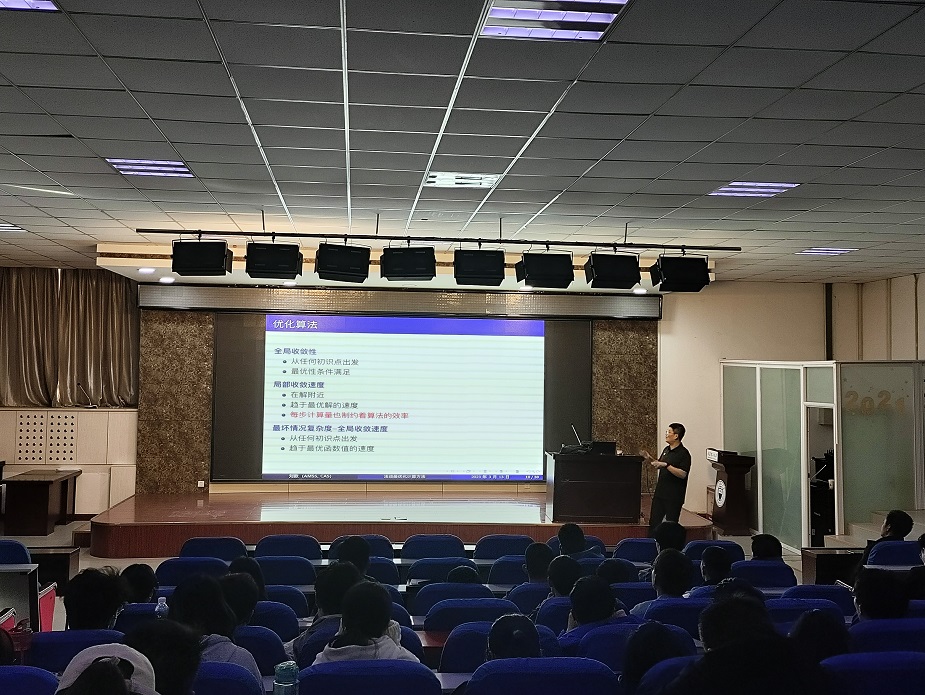 3月13日下午,公司邀请中国科公司数学与系统科学研究院“冯康首席研究员”、博士生导师、计算数学与科学工程计算研究所副所长刘歆研究员在马克思主义公司一楼报告厅进行了题为《浅谈最优化计算方法》的科普讲座。本次讲座由公司经理杨卫华教授主持,近百名本科生、研究生参加了讲座。