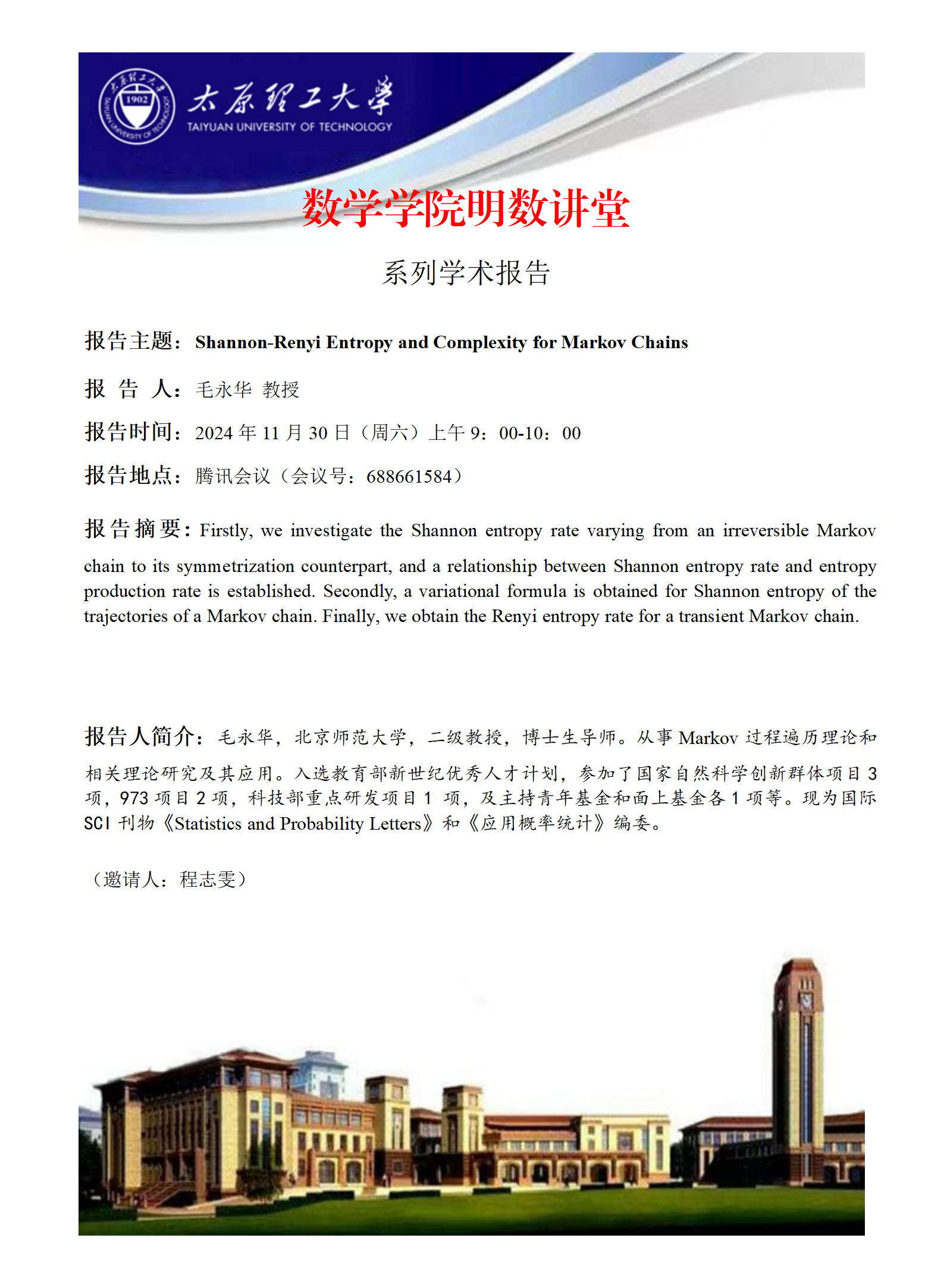 报告地点:腾讯会议(会议号:688661584)