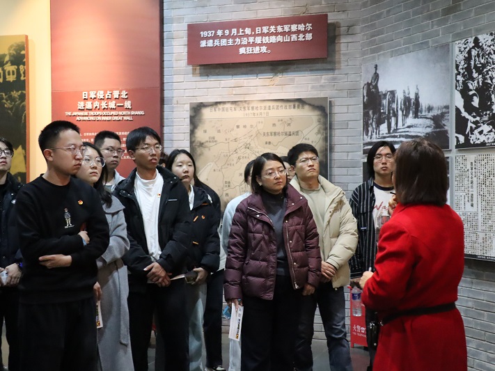 随后,党员们走进平型关大捷纪念馆。馆内珍藏的老照片、锈迹斑斑的武器装备、泛黄的战士信笺,生动还原了平型关战役的壮阔历程与艰难险阻;沉浸式半景画馆以声光电结合的场景演绎,再现了八路军战士依托有利地形伏击日寇、军民携手支援前线的震撼画面。在讲解员的细致引导下,大家系统了解了平型关大捷的战略背景、战斗经过与历史意义,深刻体会到八路军将士的战略智慧与不畏强敌、视死如归的革命意志。乔沟战役遗址、平型关大捷纪念馆共同构成了独具特色的乡土红色教育课堂,为校地党建联学联建提供了鲜活载体。