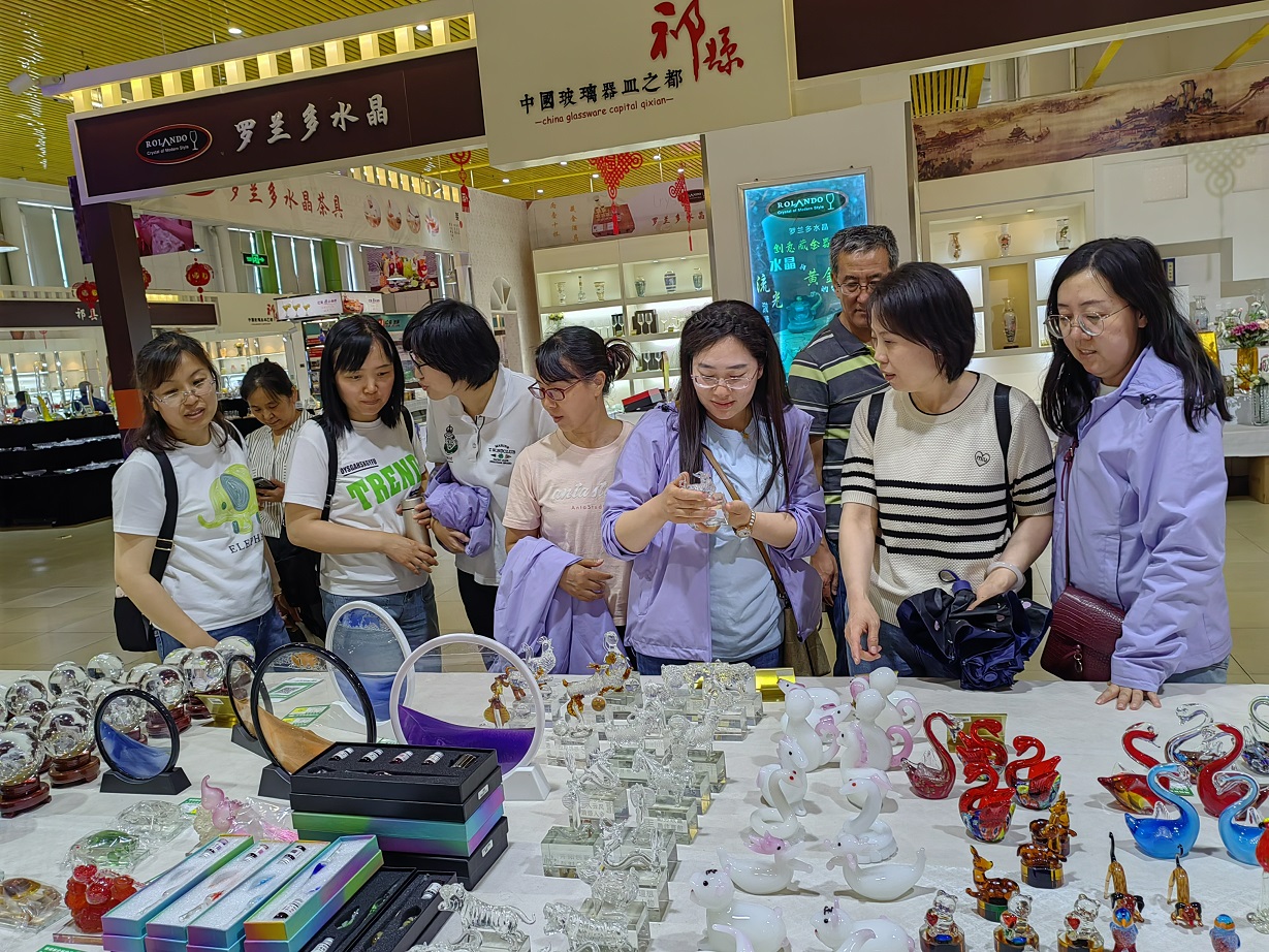 在中国红海玻璃文化艺术园,红海玻璃有限公司董事长李健生带领全体老师共同学习欣赏展览厅内多彩的玻璃制品,实地观看精湛纯熟的手工玻璃制作工艺。经过参观老师们深刻领会创新、协调、绿色、开放、共享的发展理念。
