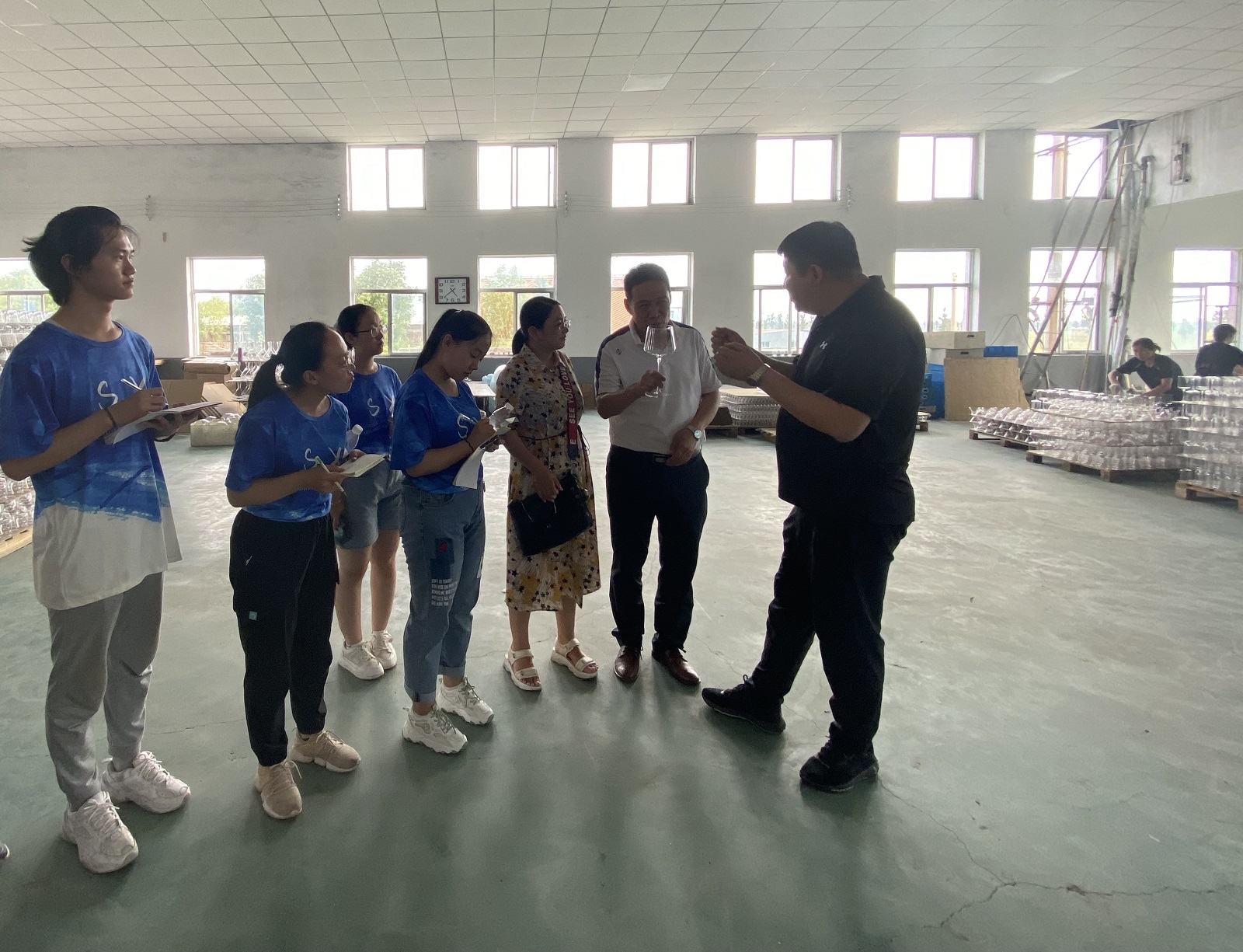 随后,游志勇书记带领实践队员一同前往祁县知名企业——山西喜尊玻璃制品有限公司进行参观交流。在公司总经理张文磊的带领下,大家参观玻璃器皿生产车间并了解相关工艺流程。在随后的座谈中,针对同学们感兴趣的创业历程、发展理念等问题,张文磊用自己的亲身经历给出了答案——永葆一颗匠心和持续不断的创新。