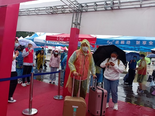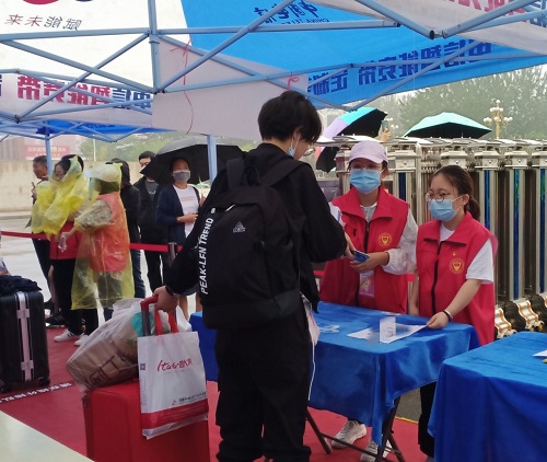突如其来的连绵秋雨并没有打乱迎新的节奏,志愿者一早就在各自岗位上准备就绪,严阵以待。为严格落实疫情防控要求,2021级新生家长在迎新报到期间不得进入校园,新生入学须在引导下保持安全距离,有序排队进行。受疫情影响,志愿者们服务在迎新第一线,承担扫码测温、秩序维护、交通疏导、行李搬运等工作,让满怀期待的新生暖心,让远道而来的家长放心。在志愿者们的共同努力下,上午三千余名2021级新生井然有序从南门进入公司。在迎新的过程中,他们的衣襟和鞋子虽然早已湿透,仍然坚守岗位,以饱满的热情、温暖的服务欢迎新同学的到来,向来自五湖四海的莘莘学子传递着TYUT的温暖,同时也为校园疫情防控安全保驾护航。