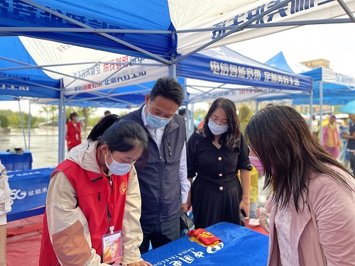 公司党委书记游志勇,党委副书记李楠楠来到报到现场看望新生和迎新工作人员,仔细询问负责人冯妍老师迎新的工作情况,与员工进行亲切交流,并对辛勤忙碌的工作人员和志愿者们表示慰问。