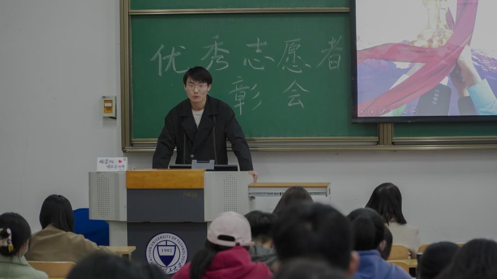 表彰会第二项,由主持人宣读2022年度优秀志愿者获奖名单,获得“志愿之星”的同学有:刘林婧、于冬雪、董诗羽、张心怡、韩静燚、宫子嫚、卢俊和、郭隽希;获得“优秀防疫志愿者”的同学有:张琪、张圣豪、杨淑琪、张梅、唐政、台明浪、彭可晴、邹雪凤、宋春丽、陈柯羽、高佳楠、李诗玥。本次表彰会共表彰20名优秀志愿者。