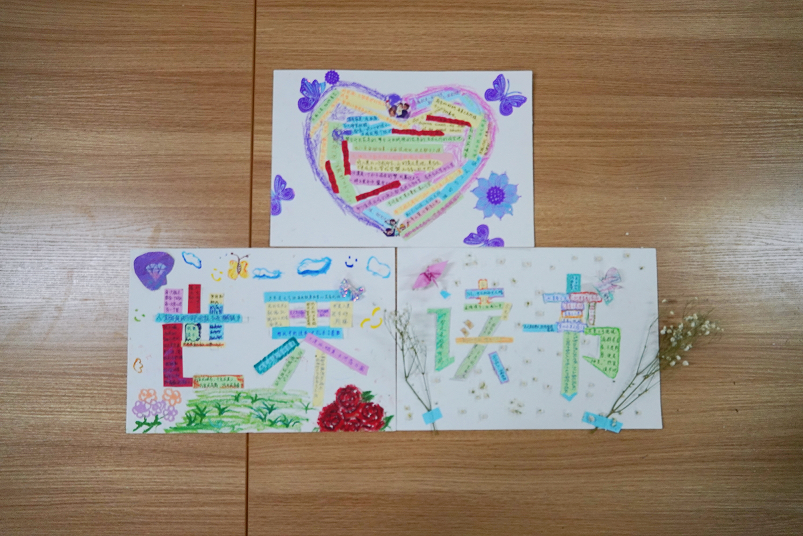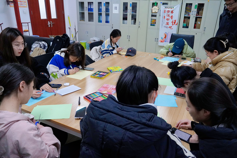 活动前,同学们准备好彩纸、蜡笔等各种材料,为活动的顺利进行做了充足的准备;活动中,同学们摘抄红色经典著作语录,将其裁剪到合适大小拼贴成“世界”“读书”字样以及“爱心”图形,并用蜡笔、彩纸等装饰拼贴画。同学们团结协作,用心创作,经过近一个小时的努力,呈现出一幅完美的“世界爱读书”拼贴画作品。