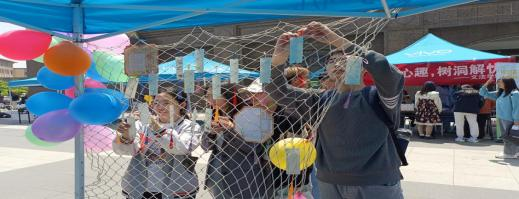 活动现场吸引了众多同学的关注,大家纷纷参与体验。在心愿祝福墙前,同学们将自己的心愿和对生活的美好祝福写一张张许愿卡上。活动进行不久,心愿祝福墙便挂满了许愿卡。在emo千纸鹤活动中,彩色纸片化为同学们烦恼的“载体”,被折叠成千纸鹤放在储藏罐中。“展翅“的千纸鹤必定会带着同学们的烦恼远走高飞。此外,现场还设有汉诺塔、索玛积木益智小游戏供来往同学体验,增加了活动的趣味性。