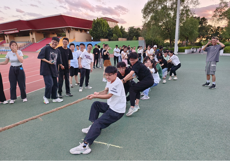 为营造积极向上、健康文明的校园气氛,发扬团队精神,增强公司学子的集体凝聚力,7月7日,公司员工会面向2022级员工在东操场组织开展了“热情迎新齐合作,共建数院大家庭”迎新拔河友谊赛,近百名同学参加。