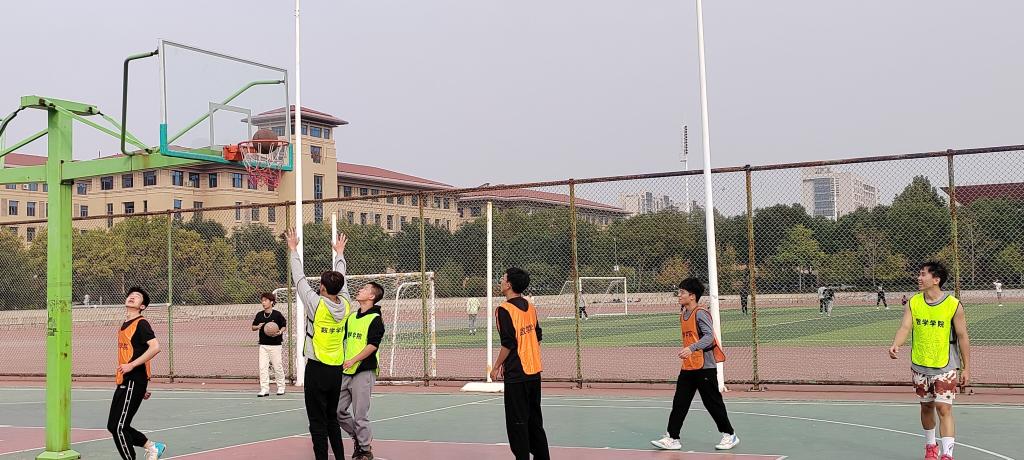 本次比赛赛制为10分钟21分制,四支队伍通过抽签先两两对决,胜者晋级决赛,决出冠军。晋级赛中,球员们全力以赴、争分夺秒。他们敏捷的运球转身与精准的三分投篮,为自己的队伍夺取分数的同时,也让现场观众热血沸腾。经过激烈的比赛,熊清源队和李锦涛队晋级决赛。双方你来我往,打得有来有回;比分你追我赶,赛况焦灼。起跳投篮、预判拦截;突破上篮、起跳干扰......最终熊清源队以12:9的比分获得冠军,本次篮球赛也在同学们的欢呼鼓掌当中落下帷幕。各队球员们互相握手致意并合影留念,充分展现了“友谊第一,比赛第二”的精神。