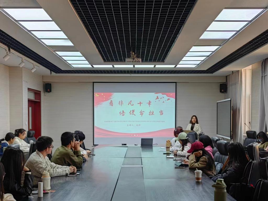 为动员引领青悦骨干认真学习领会习近平新时代中国特色社会主义思想,有力有序推进团员和青年主题教育,充分激发新时代青年的青春激情,党委副书记李楠楠为同学们带来了一场主题为“树理想、强本领、勇担当,争做新时代优秀青悦骨干”的讲座。她通过中国共产党百年历史的四个时期对青年的要求分别做了说明,告诉同学们如何做好一名新时代合格的青悦骨干。团委书记冯妍为同学们做了一讲题为“看非凡十年,悟使命担当”的专题讲座。她通过回顾祖国十年来的伟大变革,鼓励青悦骨干要紧跟时代要求,明确自己的使命和担当。同时勉励青悦骨干要充分发挥桥梁纽带作用、正面引导作用和核心骨干作用,组织开展形式多样的主题学习活动,营造积极向上的学习氛围。