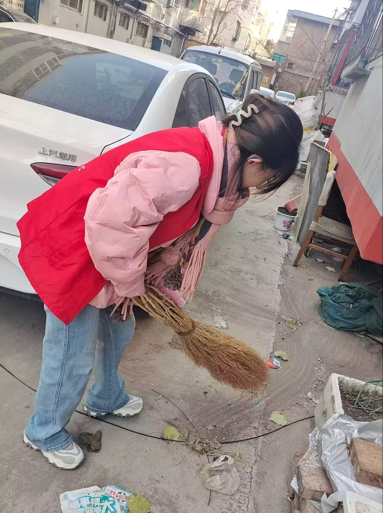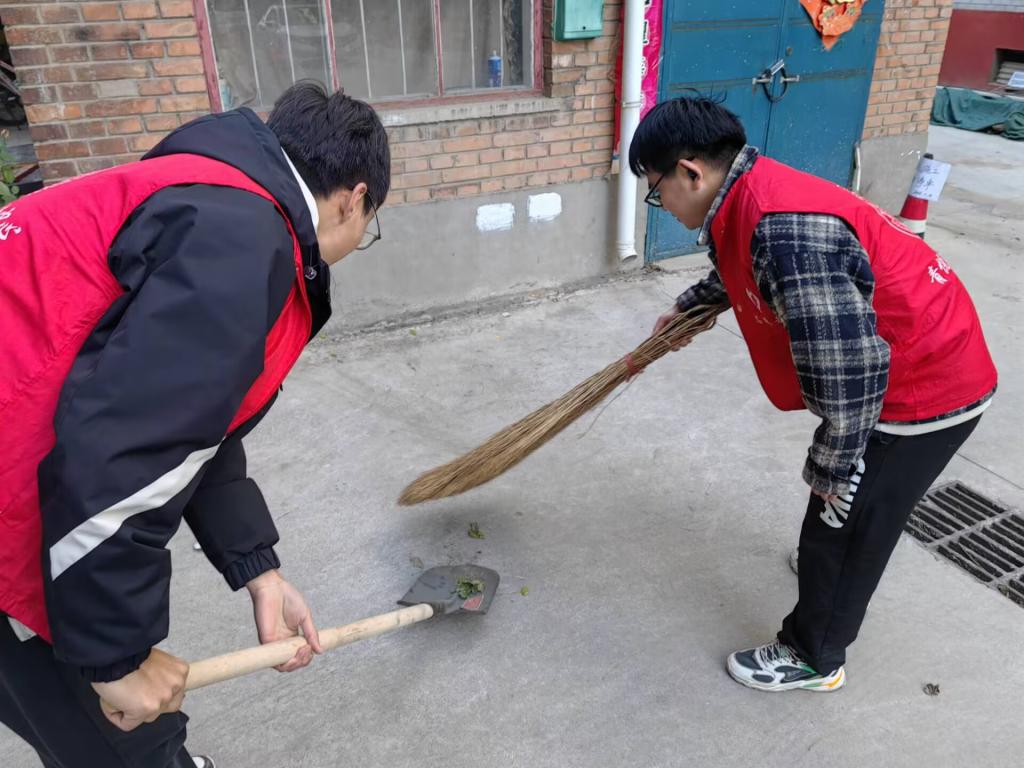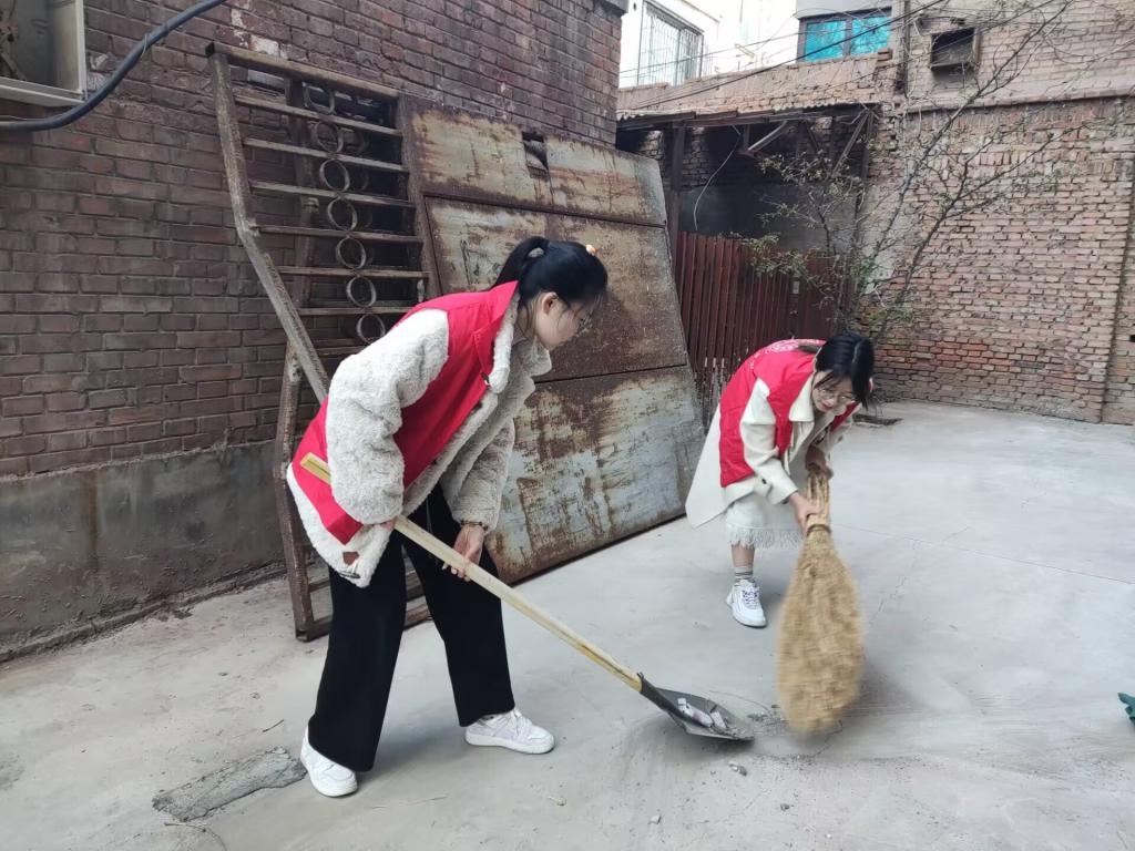 集中学习结束后,团员青年开始进行志愿服务活动,手拿铁锹和扫把进入小区,打扫卫生并帮助有需要的居民,为社区居民创造良好的活动环境。