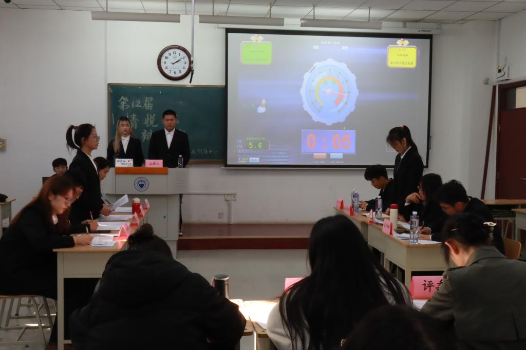 本届辩论赛共三轮——初赛、复赛、决赛。每场比赛的主要流程包括自我介绍、开篇立论、攻辩环节、自由辩论以及总结陈词等五个环节。初赛共计六支队伍参加,两两对战,共三场比赛,得分较高的四支队伍进入复赛,复赛的两支获胜队——统计2201班“从容应队”和统计2202班“我说的都队”挺进决赛。