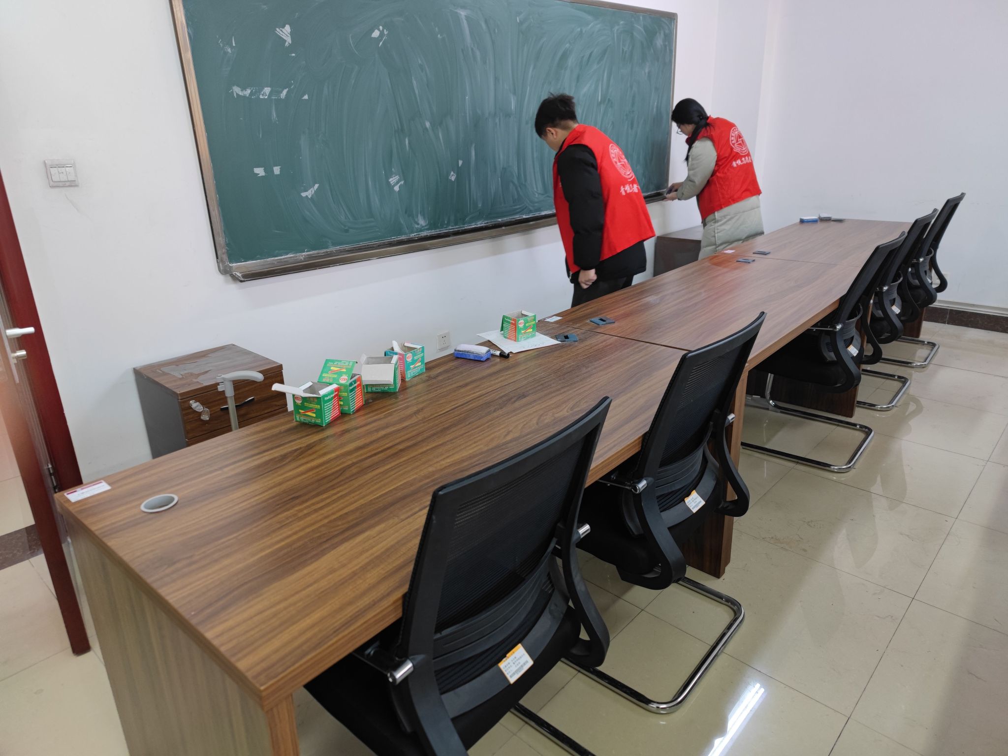 下午三点,活动分两组开展,一组志愿者拿着劳动工具来到公司常师贞铜像周边区域,另一组志愿者则前往教室和自习室等地。志愿者们在活动中井然有序,分工合作,劳动的身影穿梭在公司内外的各个角落。大家充分发扬不怕苦、不怕脏的精神,不放过任何一个卫生死角,忙的不亦乐乎。经过同学们的共同努力,公司公共卫生环境得到进一步改善,整个面貌焕然一新,为广大师生学习与集体活动提供了干净、整洁、舒适的环境。