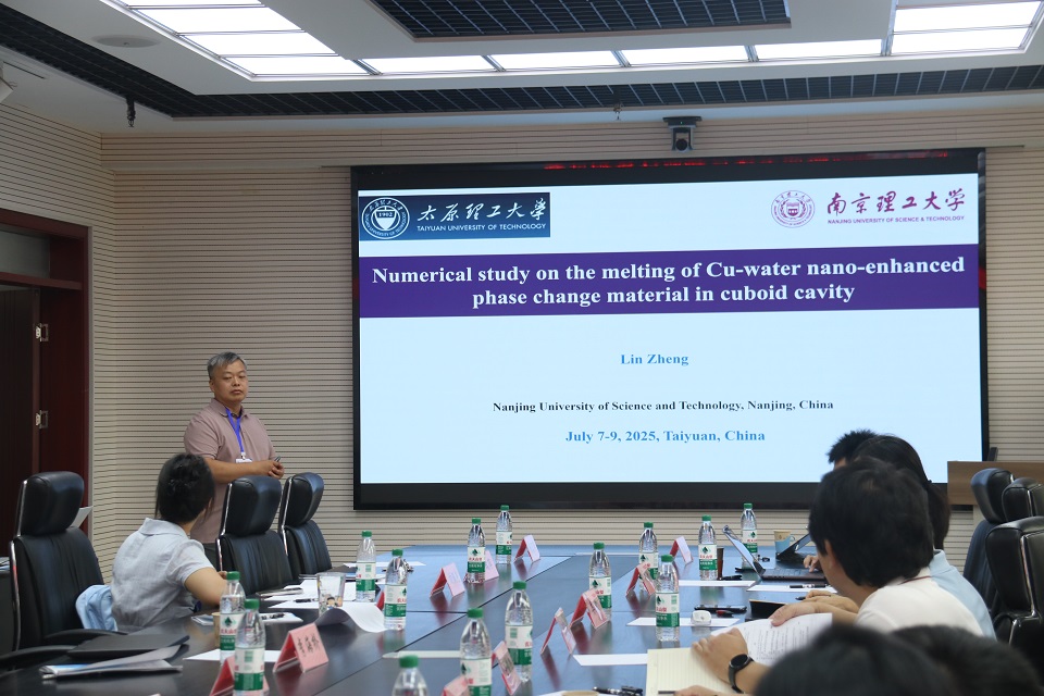 南京理工大学郑林教授展示了Cu-water纳米相变材料熔化过程的数值模拟成果。