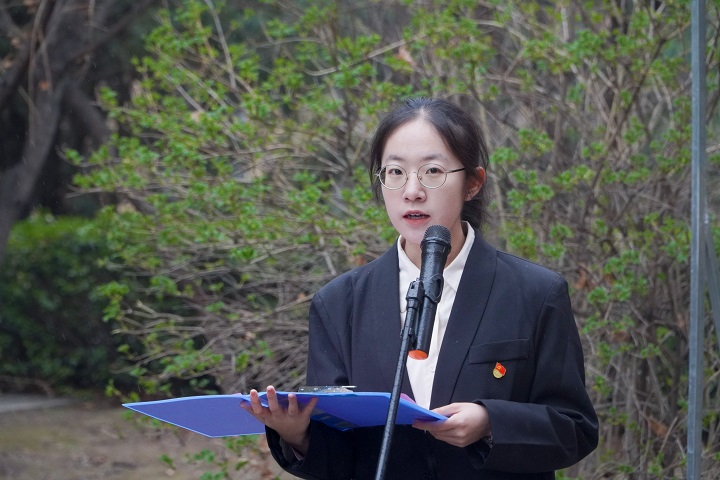 员工代表高可馨表示常师贞先生胸怀家国、矢志奉献的精神值得每个人传承,作为数学学子,将练就过硬本领,积极投身实践,以真才实学报效祖国。