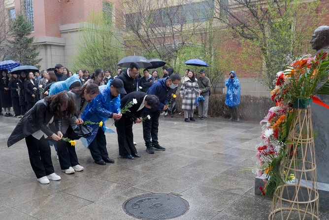 活动在肃穆庄重的氛围中进行。老教师代表卢准炜满怀思念地向大家讲述了常师贞先生的生平事迹。师生代表向常师贞先生敬献花篮,表达对他的崇敬和怀念。与会人员献上鲜花,并向常师贞先生雕像三鞠躬。